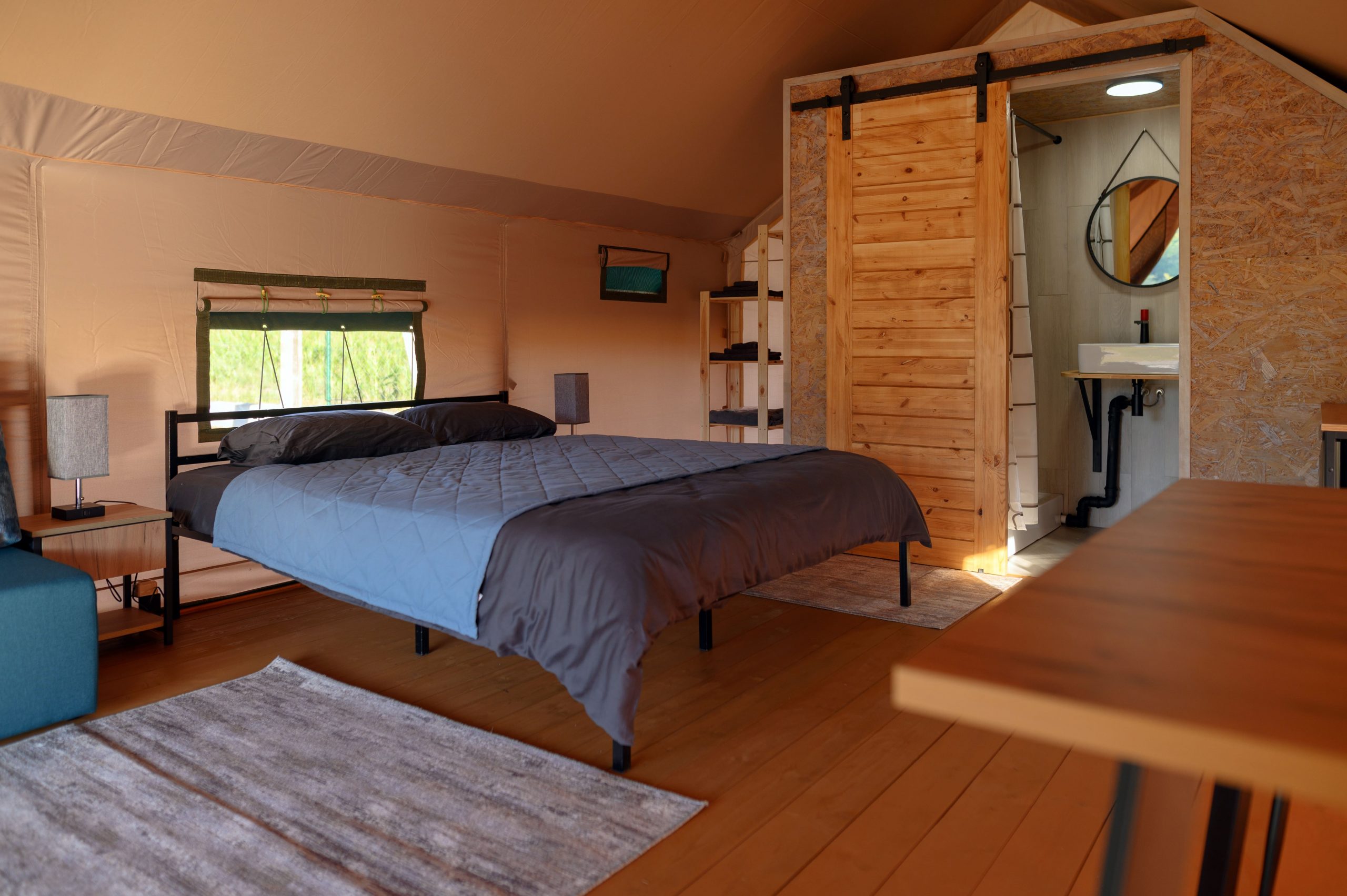 Просторные глемпинги площадью 25 м² идеально подходят для двух гостей, желающих насладиться отдыхом на свежем воздухе без потери удобств. В номере предусмотрена уютная кровать и все необходимые условия для комфортного проживания.